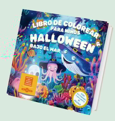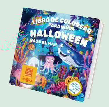 ¿Qué tal una aventura creativa que los lleve a explorar el fondo del mar mientras colorean y se divierten? 🐠 Este año, dale un giro único a Halloween con una experiencia que combina la magia de esta festividad con el asombroso mundo submarino. Los niños no solo disfrutarán de horas coloreando, sino que también descubrirán criaturas marinas disfrazadas, un cuento sobre el origen de la tradición de Halloween, ¡y cuenta con una hora de música ambiental para acompañar la aventura, 16 dibujos más para colorear y 23 actividades educativas para los más pequeños! 🌊🎶